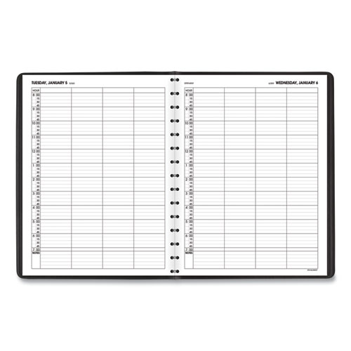 Plan up to four schedules at once in one stylish appointment book. Premium cover for enhanced durability with a storage pocket. Features a convenient one day per page spread with four columns -- one for each person. Quarter-hour appointment times and notes space on each page.