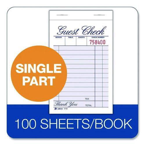 One-Part Guest Check Pad, One-Part (No Copies), 3.35 x 4.94, 100 Forms/Pad, 12 Pads/Pack