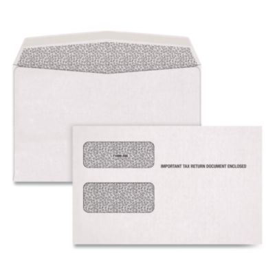 Double Window Tax Form Envelopes, Commercial Flap, Gummed Closure, 5.63 x 9, White, 100/Pack