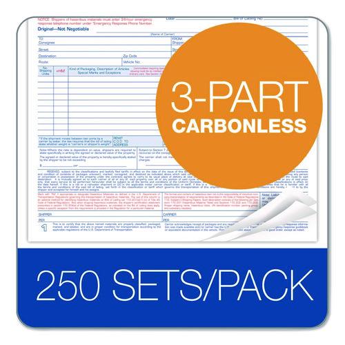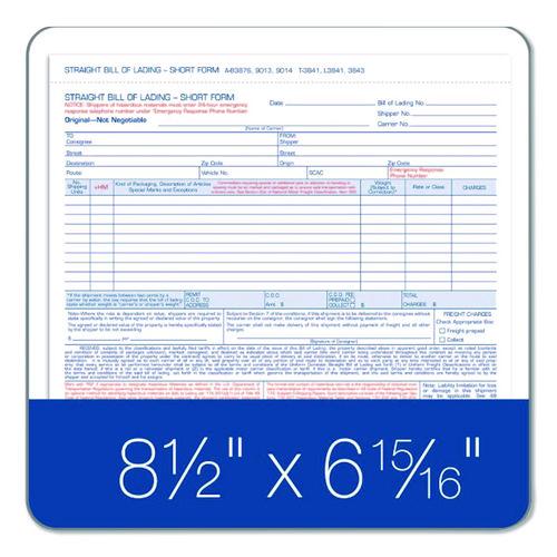 Bill of Lading - Short Form for Up to Ten Articles, Three-Part Carbonless, 8.5 x 6.94, 250 Forms Total