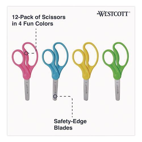 KleenEarth Rice Husk Kids Scissors, Blunt Tip, 5" Long, Straight Assorted Color Handles, 12/Pack