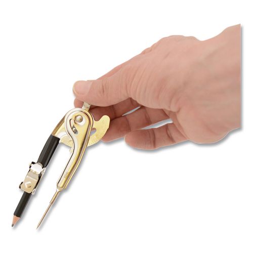 Designed for students. All metal nickel plated with easy grip top for firm control. Scaled with inches and metric on arm. Easily adjusts to draw circles up to 13" diameter.