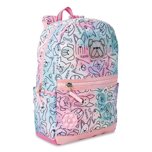 Perfect for back to school and beyond, this super-cute backpack features a unique dog theme and a three-dimensional molded-rubber glitter applique. Rugged polyester construction with both a padded back and padded shoulder straps. Includes a color-coordinated, round-pop key chain.
