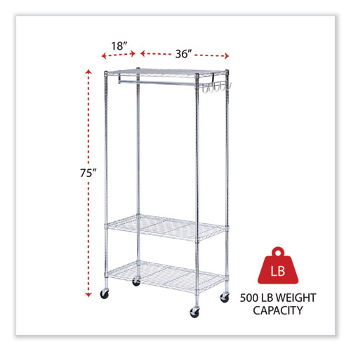 Wire Shelving Garment Rack, 30 Garments, 36w x 18d x 75h, Silver