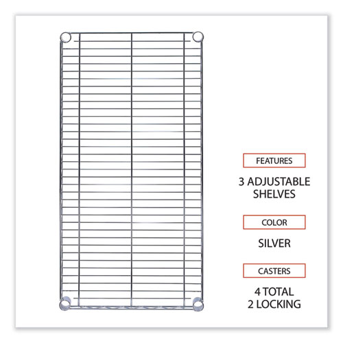 Time-saving design assembles in minutes without tools. Strong welded wire construction. Double-sided for quick access to items. Rack features hanging rod for garments and five support hooks. Three shelves adjust in 1" increments and support up to 350 lbs. on each shelf. Four casters for quick mobility and two lock. Total unit capacity is 500 lbs. if used with casters. Hangers not included.