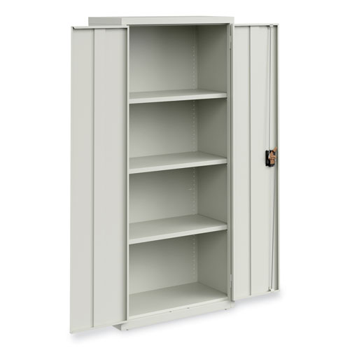 Keep your essential materials protected, organized and secure. Durable, fully welded steel cabinet features a smooth, nonporous, baked-enamel finish. Recessed handle and core-removable locks provide added convenience. All shelves support up to 180-lb, and all but the fixed bottom shelf adjust in 1-inch increments, allowing you to configure your cabinet to suit your needs.