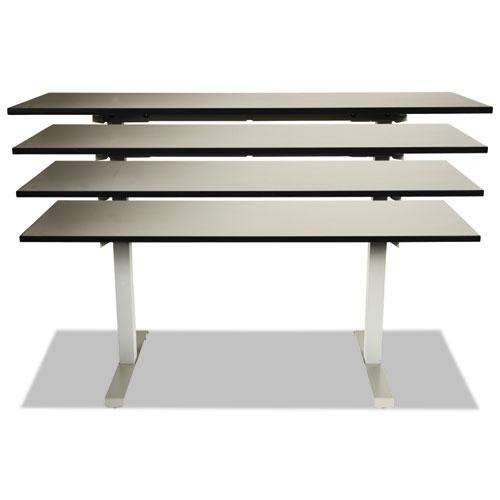 Set the perfect height when sitting or standing, when you choose this electric, two-stage, height-adjustable table base. Durable, powder-coated steel base features a 250 lb maximum lift capacity (maximum capacity includes the sold-separately table-top), a lift/lower range from 27" to 45.2" as well as a standard up-and-down control set. Dual-motors provide speeds of up 0.8" per second (depending on overall load); and though designed specifically for use with ALETT Series Reversible Laminate Rectangular Table Tops (sold separately), these steel-frame bases attach to most common rectangular tops ranging from 47.5" to 72" in width and 24" to 36" in depth. Integrated crossbar supports prevent racking while ensuring overall stability. Adjustable leveling glides help you compensate for uneven floors. Base includes integrated cable-management channels and a 9.8 ft power cord. Quick-setup design with fold-out legs. Table tops and bases are sold and shipped separately—ORDER BOTH.