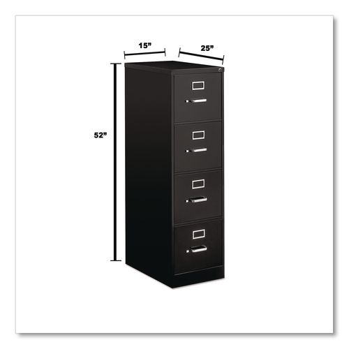 Economy Vertical File, 4 Letter-Size File Drawers, Black, 15" x 25" x 52"