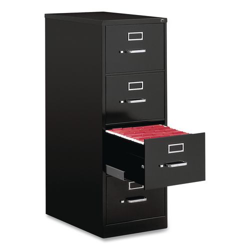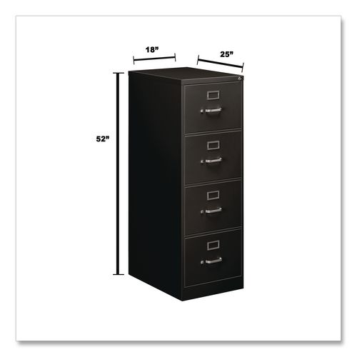 Economy Vertical File, 4 Legal-Size File Drawers, Black, 18" x 25" x 52"