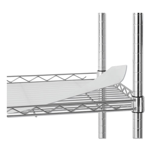 Ideal for a variety of applications, from food-service stock rooms to mail rooms. Shelves adjust in 1" increments, and each of the four poles feature scored markings to simplify readjustments. Push/pull handle and swivel casters make maneuvering the cart easy. Includes three shelf liners. Easy to assemble—no tools required.