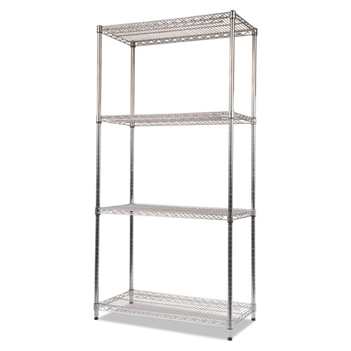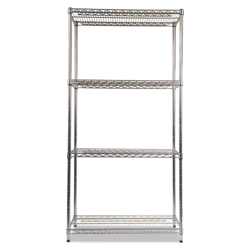 NSF Certified Industrial Four-Shelf Wire Shelving Kit, 36w x 18d x 72h, Silver