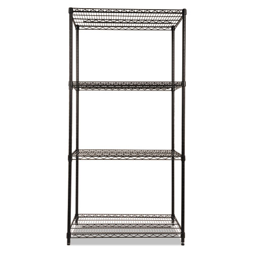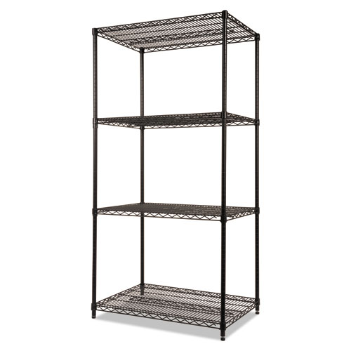 NSF Certified Industrial Four-Shelf Wire Shelving Kit, 36w x 24d x 72h, Black
