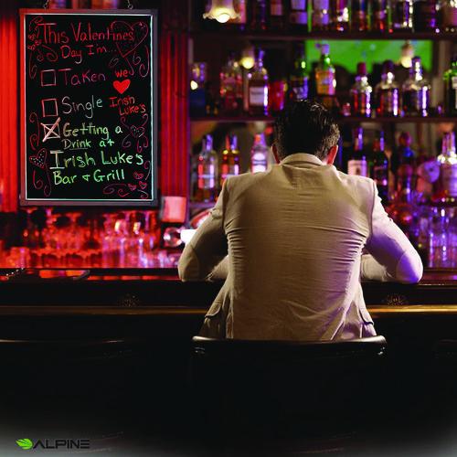 This LED illuminated hanging message writing board features a glowing neon notice sign with 48 different flashing display styles. With a main panel made of high-quality tempered glass fitted in a durable aluminum frame, this LED writing board meant for outdoor restaurant or venue advertising.