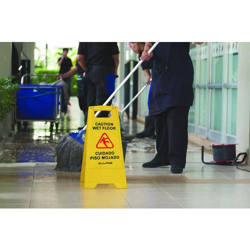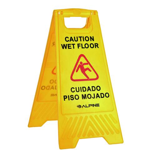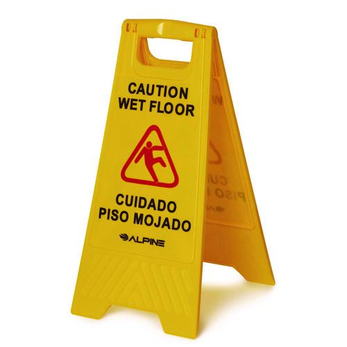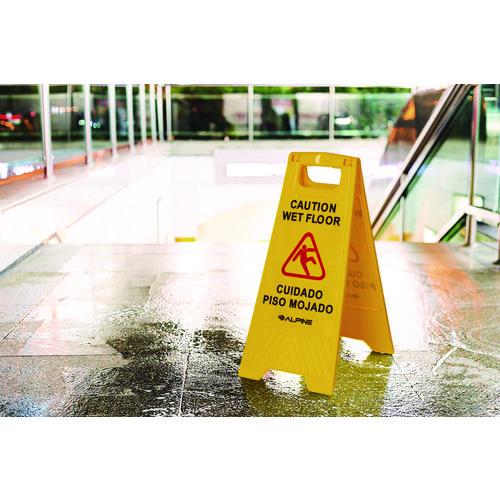 The Alpine Industries Wet Floor Sign prevents your customers and employees from injuring themselves on dangerous slippery surfaces with clear identification. This sign is constructed of a durable polypropylene plastic.