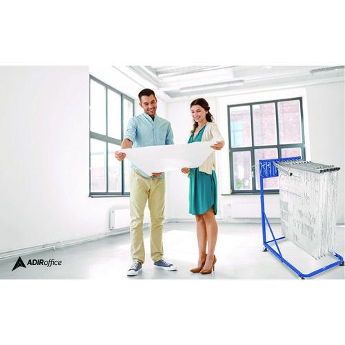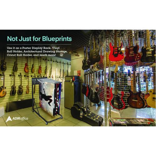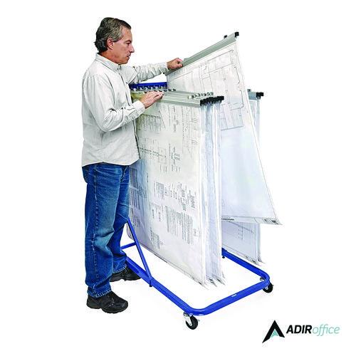 Provides hanging blueprint storage that's convenient and easy to get to. The 12 pivot brackets swing out wide so it's a cinch to see and access your blueprints, plan drawings, maps, or other large documents.