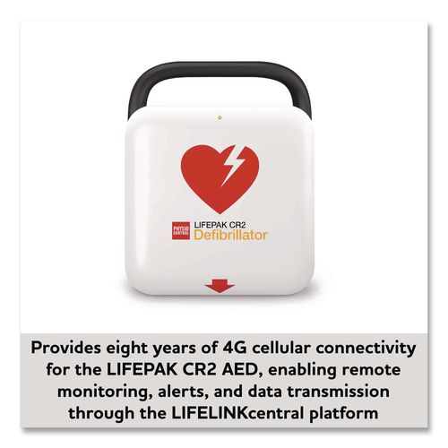 This eight-year 4G data plan keeps LIFEPAK CR2 AEDs connected for remote monitoring, ensuring readiness, location tracking, and centralized management through the LIFELINKcentral system.
