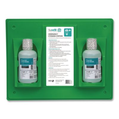 - Includes two sterile buffered eyewash bottles for fast, effective eye rinsing.