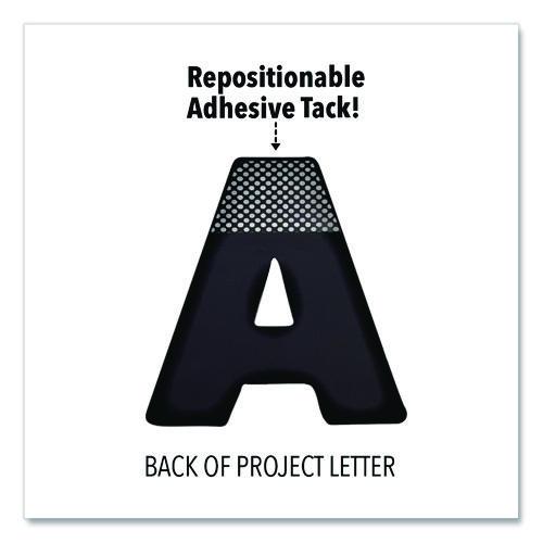 Great for business presentations and school reports. Letters and numbers are repositionable with a small adhesive strip on each letter. The pack includes ten sheets of each letter and five sheets of each number. Includes centering ruler, glue stick and repositionable adhesive tack.