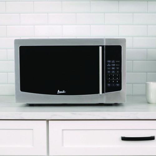 Save counter space with this compact, 1,000 watt stainless steel microwave oven. It's ideal for dorm rooms, offices, RVs, tiny homes or anywhere you might need to cook food fast. Electronic control panel with six one-touch cook settings, cook by power level/time controls and defrost by weight/time functionality.