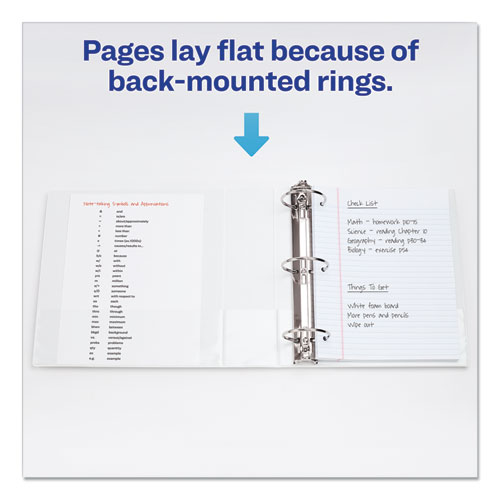 - Rings are mounted on back cover for a clean spine and pages lie flat.