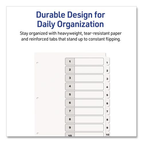Customizable TOC Ready Index Black and White Dividers, 10-Tab, 1 to 10, 11 x 8.5, 1 Set