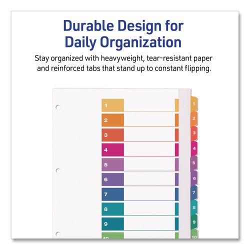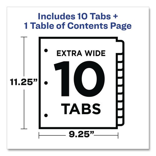 Customizable TOC Ready Index Multicolor Tab Dividers, Extra Wide Tabs, 10-Tab, 1 to 10, 11 x 9.25, White, 1 Set