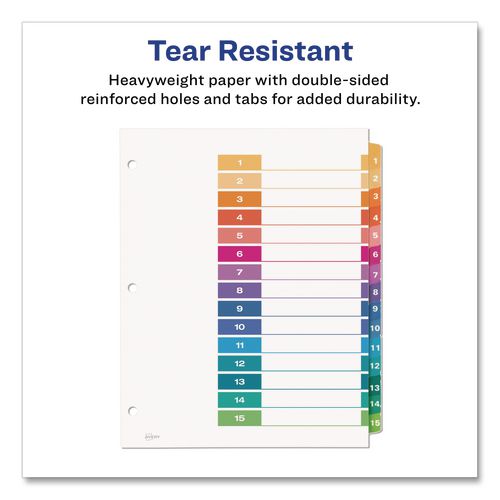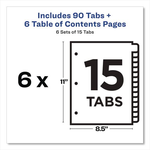 Customizable TOC Ready Index Multicolor Tab Dividers, 15-Tab, 1 to 15, 11 x 8.5, White, Traditional Color Tabs, 6 Sets
