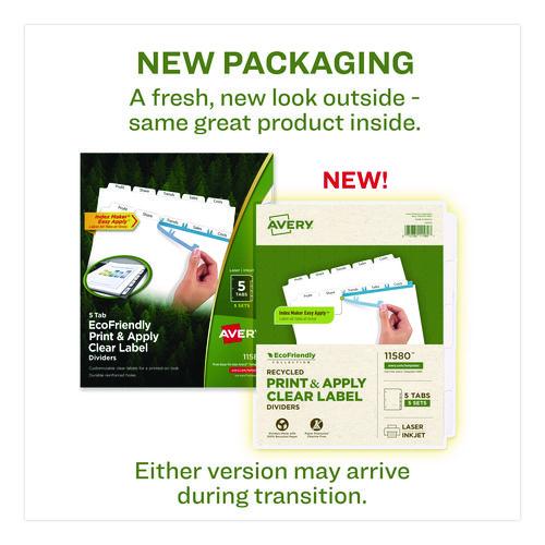 Index Maker EcoFriendly Print and Apply Clear Label Dividers with White Tabs, 5-Tab, 11 x 8.5, White, 5 Sets