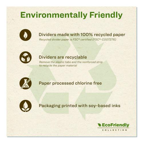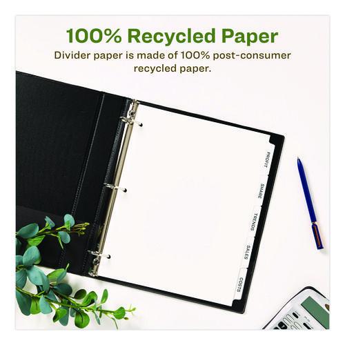 Dividers are made of post-consumer recycled materials and are processed chlorine-free. Clear labels virtually disappear when applied to tabs. Label all tabs at once using the Index Maker® Easy Apply label strip. Easy to customize with free templates from Avery Design & Print. For laser and inkjet printers.