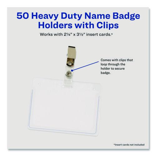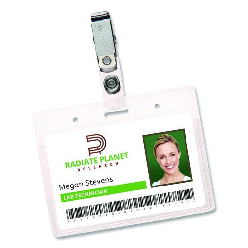Secure Top Clip-Style Badge Holders, Horizontal, 2 1/4 x 3 1/2, Clear, 50/Box
