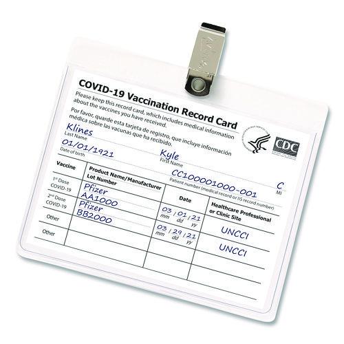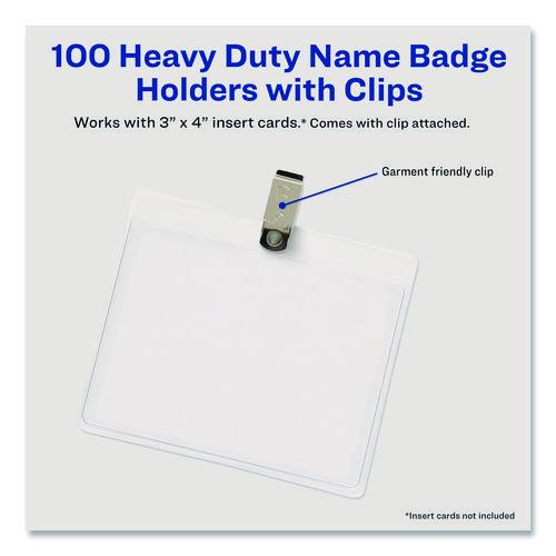 Heavy-Duty Clip-Style Badge Holders, Horizontal, 4 x 3, Clear, 100/Box