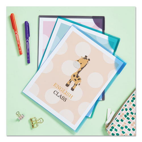 Corner Lock Document Sleeves, Letter Size, Assorted Colors, 6/Pack
