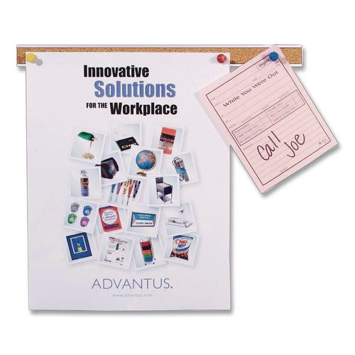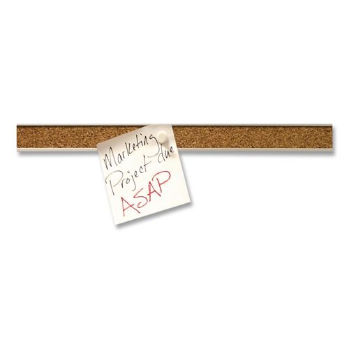 Display memos, notes, pictures, calendars and more with this map rail. This map rail features a durable aluminum frame with a satin finish and a self-healing cork surface so items can be re-arranged without causing damage.