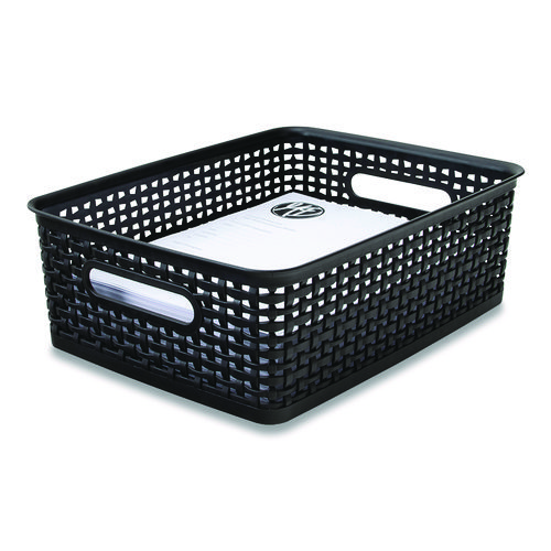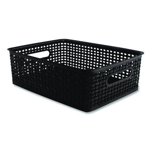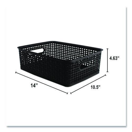 Plastic Weave Bin, Medium, 14" x 10.5" x 4.63", Black