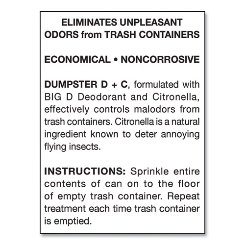 Industrial-grade powder quickly and effectively deodorizes heavily contaminated areas. Special odor-absorbing granules infused with citronella minimize insect infestation problems. Safety-first formula provides long-lasting performance.