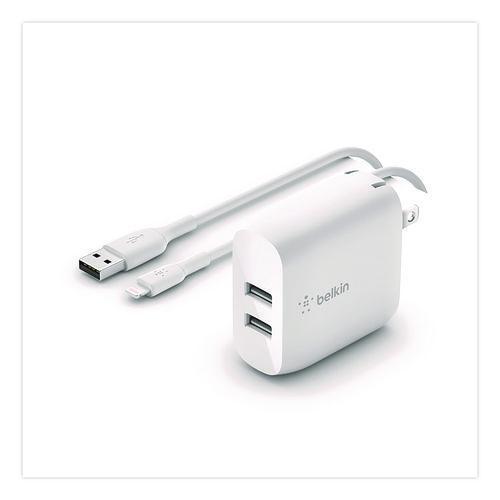 BOOST CHARGE Dual USB-A Wall Charger + Lightning to USB-A Cable, White