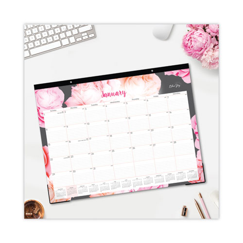 Joselyn Desk Pad, Rose Artwork, 22 x 17, White/Pink/Peach Sheets, Black Binding, Clear Corners, 12-Month (Jan to Dec): 2026