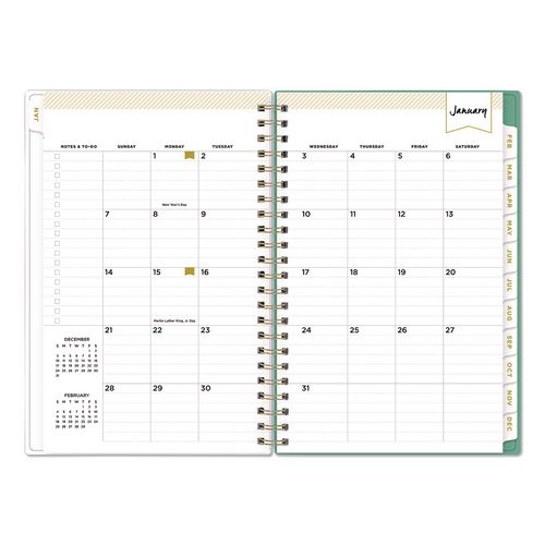 - Dated January to December monthly and weekly pages, plus six bonus past monthly pages (July - Dec.).