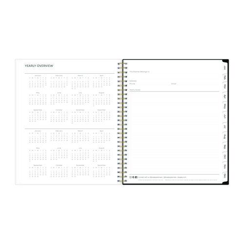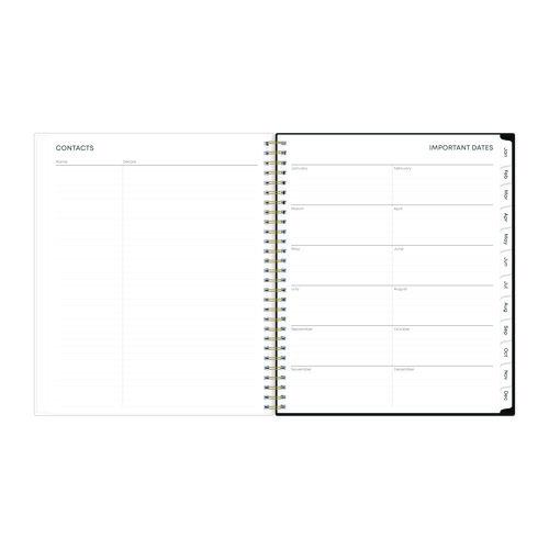 - Twin-wire binding and durable coated monthly tabs.