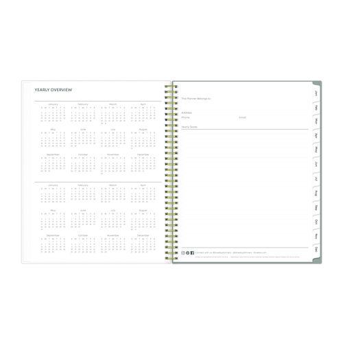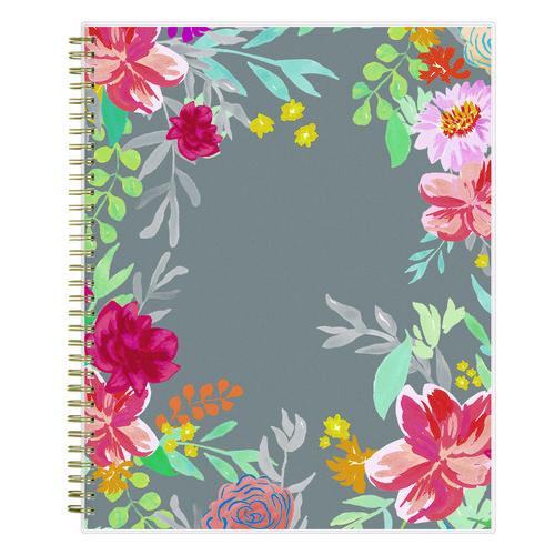 Give your schedule a fresh start and bring order to your busy life. with this planner and its bright floral motif on a neutral gray background. Two-page-per-week spread features lined daily blocks with ample space for planning. Monthly view per two-page spread includes a Notes section for important projects. Monthly tabs are coated for durability. Durable, frosted flexible front cover. Twin-wire binding offers easy page turning. Includes pages for Yearly Goals, Contacts, Reference Calendars, and extra Notes pages. Thick, premium quality pages reduce ink bleed-through. Includes six bonus past monthly views for easy yearly transition.