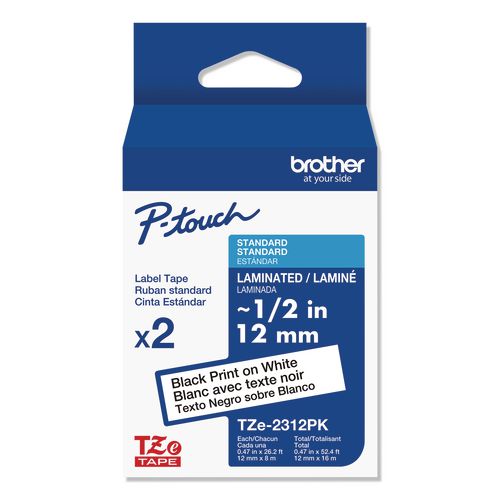 Brother P-Touch® LABEL,1/2" BK/WHT,2PK