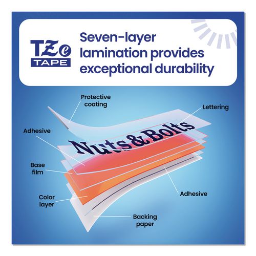 - Tape consists of seven layers of materials, resulting in a thin, extremely strong label.