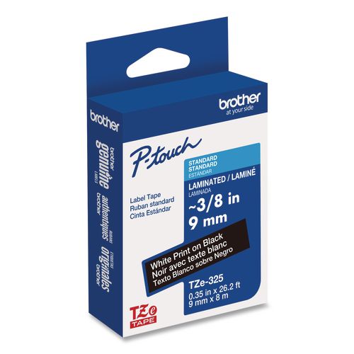 TZe Standard Adhesive Laminated Labeling Tape, 0.35" x 26.2 ft, White on Black