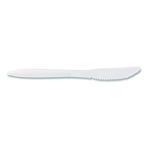 Mediumweight Polypropylene Cutlery, Knife, Plastic, White, 1,000/Carton
