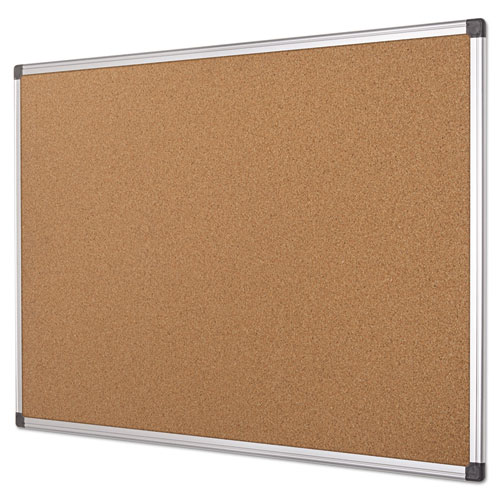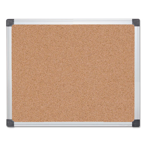 Value Cork Bulletin Board with Aluminum Frame, 24" x 36", Tan Surface, Satin Aluminum Frame