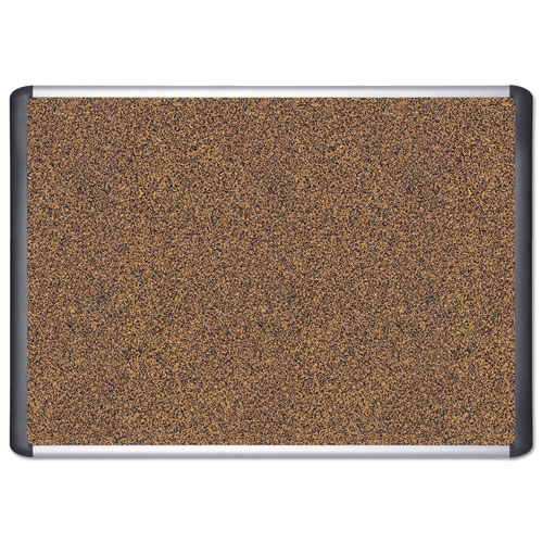 Tech Cork Board, 36" x 24", Tan Surface, Silver/Black Aluminum Frame