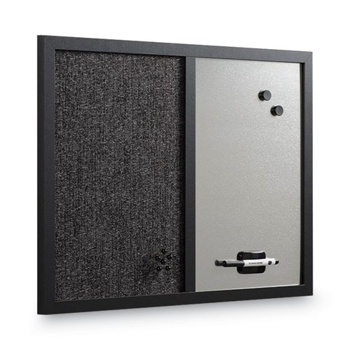 Designer Fabric Bulletin Board, Combo Magnetic Dry Erase/Bulletin, 24" x 18", Charcoal/Gray Surface, Black Fiberboard Frame