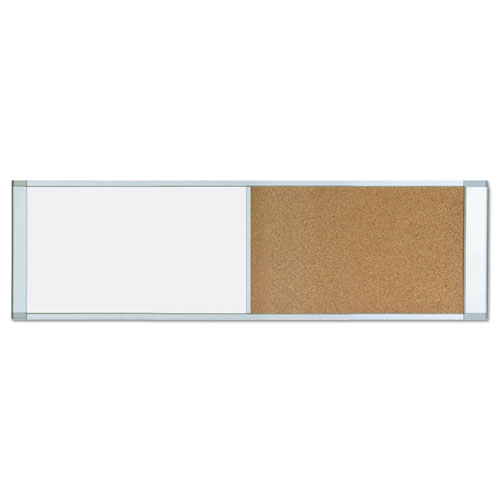 Cubicle Workstation Dry Erase Board, Combo Magnetic Dry Erase/Bulletin, 48" x 18", Tan/White Surface, Satin Aluminum Frame