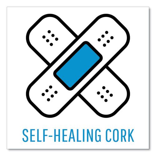 - Durable thick and resilient cork bulletin surface never shows pin holes.