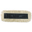 Four-ply, pretreated yarn, dust mop head. Equipped with a slot pocket backing which allows a metal dust mop frame to slide into its place quickly and easily. Sewn center fringe for added coverage and durability. The disposable head can be discarded when dirty. Ideal for use on floors that require dusting, with or without cleaning spray. Handle and frame are sold separately.